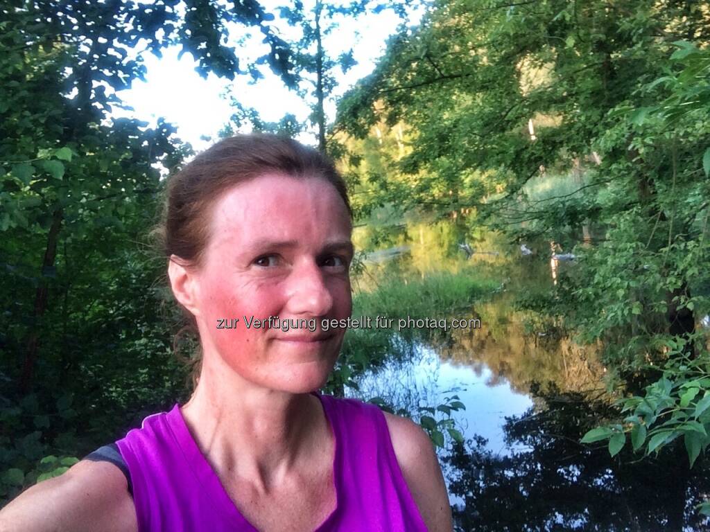 Beim Lauf war es fürchterlich schwül, die Abendsonne war aber wirklich wunderschön. Heute waren auch (für hiesige Verhältnisse) viele Läufer unterwegs - ganze 12 Gleichgesinnte sind mir begegnet! - Rekord. Dann habe ich auch noch zufällig einen meiner Lieblingszwillinge getroffen, einen alten Kindergartenfreund von Nikolas, der mich dann netterweise die letzten - zachen - Kilometer am Fahrrad begleitet und von meinem Leid abgelenkt hat.