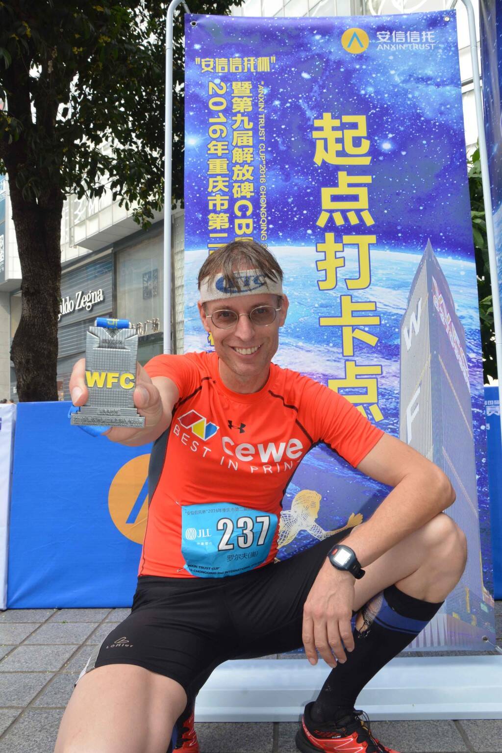 beste Grüße von Platz 9 in Chongqing. 7 Sekunden Rückstand auf Platz 6. Laufzeit: 13,44 Minuten. Nach 300 Meter Anlauf auf der Straße ging es in den Wolkenkratzer. Musste mit schlechter Startnummer 237 sehr viel überholen, kostete leider Platz 5 oder 6. Egal, es war ein super Rennen im super hohen Wolkenkratzer. Hier in China sind die Bewerbe sehr groß aufgezogen, wirklich beeindruckend...