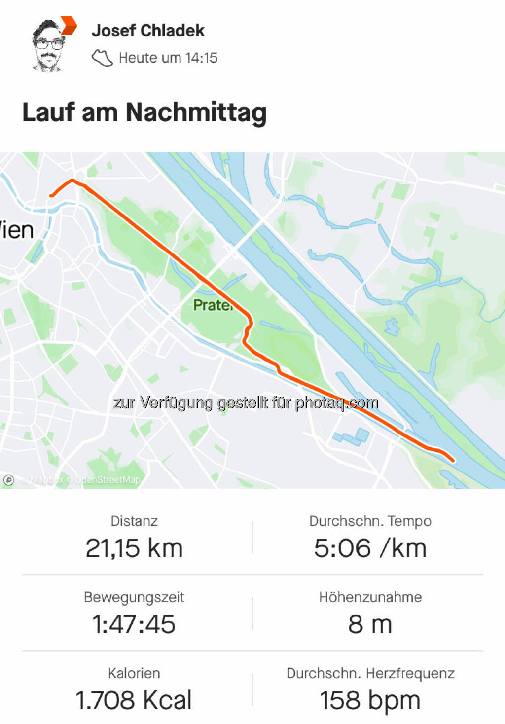 Das war also in Summe der zweite Halbmarathon, den ich je gelaufen bin, dazumals 2017, als ich eher sehr in Form war, hatte ich das in 1:52:38 geschafft. Wie ich das heute zusammengebracht habe, dass ich immer um die 5:0x gelaufen bin, weiß ich nicht. Ich hatte nach zwei schnellen Anfangskilometern schon die Angst, gleich alles zu verschießen, aber als dann nach der Wende bei 11km endlich der (harte) Gegenwind aufgehört hat und der Schnitt dann immer noch konstant blieb, hieß es ab km 16 (Lusthaus) bis runter Praterstern beißen - 1:47 hätte ich mir nie erwartet, ich war fix und fertig - aber es hat sich ausgezahlt!