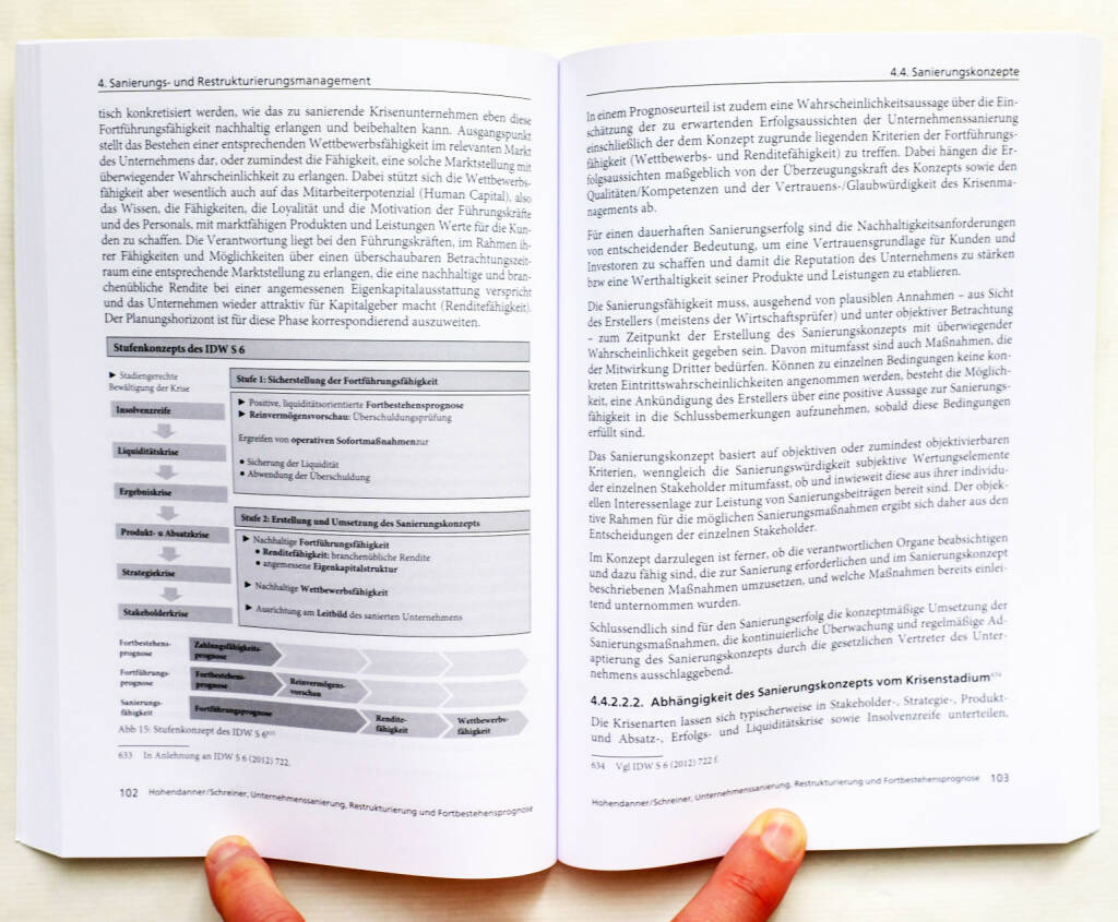 Leitfaden zur Unternehmenssanierung Der vorliegende praxisorientierte Leitfaden unterstützt bei Erarbeitung und Ausgestaltung finanzwirtschaftlicher Sanierungen von Unternehmen samt dem damit einhergehenden Sanierungsprozess: Basiswissen zur Unternehmenskrise: Definition, Krisenarten sowie Krisenverlauf mit Ursachen und Symptomen Grundlegende Auslöser, Zielsetzungen und kritische Erfolgsfaktoren von Sanierungen Eigenkapitalrecht Schwerpunkt Sanierungsmanagement: beteiligte Kapitalgeber; Bedeutung externer Berater; zeitlicher Ablauf und Eckpunkte des Sanierungsprozesses; eingehende Behandlung der Fortbestehensprognose und diverser Sanierungskonzepte; Überblick über mögliche Sanierungsinstrumente in der Krise Detaillierte Fallstudie mit den wesentlichsten Punkten der Fortbestehensprognose und praxisrelevante Interviews