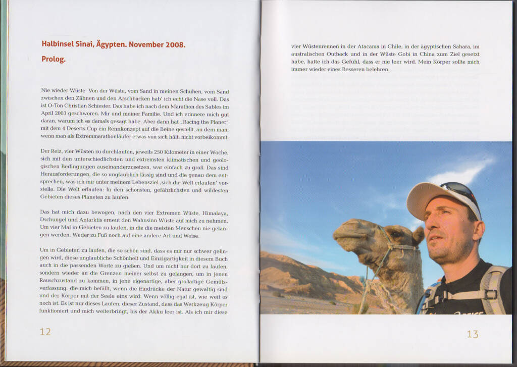Warum sucht ein Mensch bewusst solche Qualen, um glücklich zu sein? Temperaturen über 50°C, endlose sandige Weiten, kräfteraubende Dünenfelder und bitter kalte Nächte zehren an den Kräften und bringen Schiester immer wieder an die Grenze des Ertragbaren.