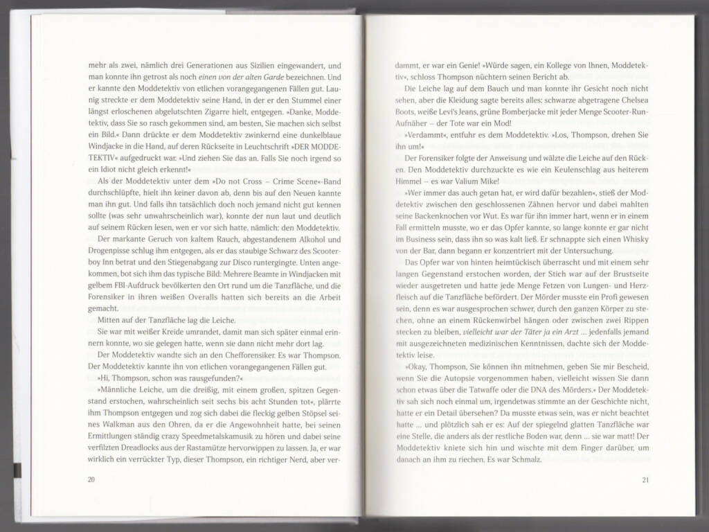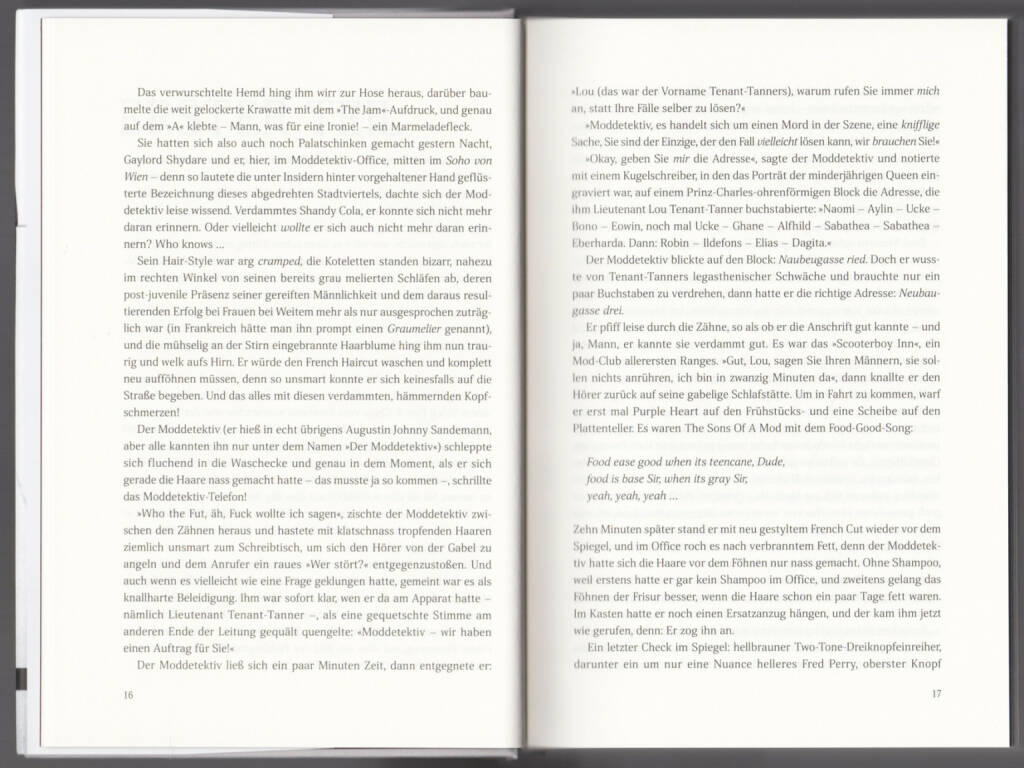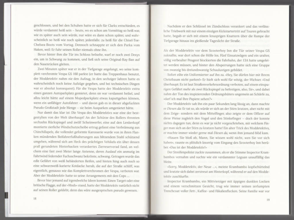 Augustin Johnny Sandemann ist der Moddetektiv. Ein gut aussehender, amphetaminsüchtiger Privatermittler in den besten Jahren. Und Christopher Justs Roman so ziemlich das Beste, was schwungvolle, selbstironische und gigantisch unterhaltsame Literatur leisten kann.
