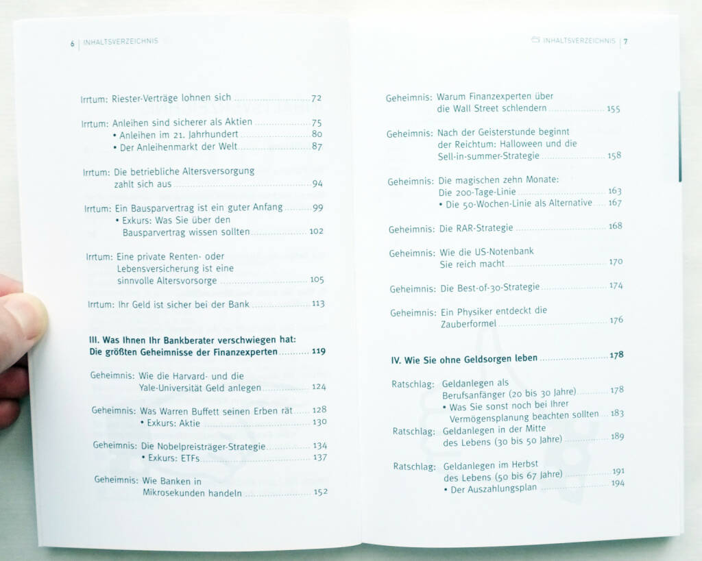 Welches sind die gängigen Irrtümer über Geldanlagen? Wie lauten die größten Geheimnisse der Finanzexperten? Und wie kann man ohne Geldsorgen in jedem Lebensalter leben? Gut lesbar und für jedermann verständlich bietet das Buch einen fundierten Einblick in das komplexe Thema Geldanlagen: Es klärt auf über die grundlegenden Irrtümer über Geldanlagen und wie sich diese Irrtümer auf die private Altersvorsorge auswirken. Im nächsten Schritt lernt der Leser professionelle Anlagestrategien kennen, die in der Regel nur Finanzexperten, nicht aber dem Otto-Normal-Bürger bekannt sind. Schließlich werden konkrete Anwendungsmöglichkeiten aufgezeigt, passgenau abgestimmt auf die verschiedenen Lebensabschnitte einer Biographie. Neben seiner Praxisnähe zeichnet sich der Band durch die Veranschaulichung der aufgezeigten Zusammenhänge über konkrete Beispiele aus der Finanzwelt aus.