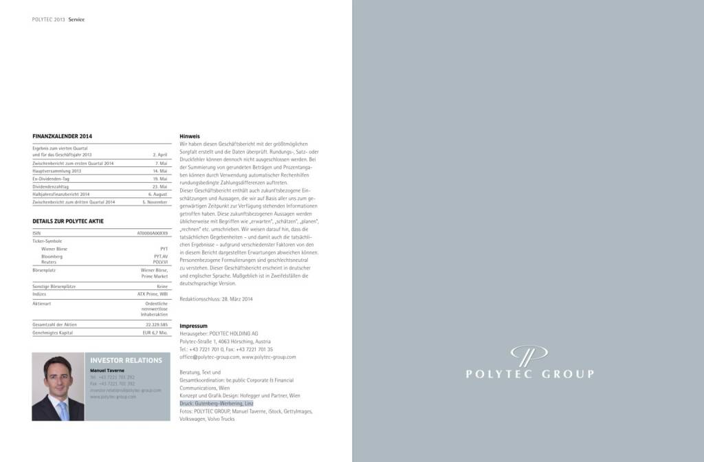Hinten of book 'Bericht Geschäfts - Polytec 2013'