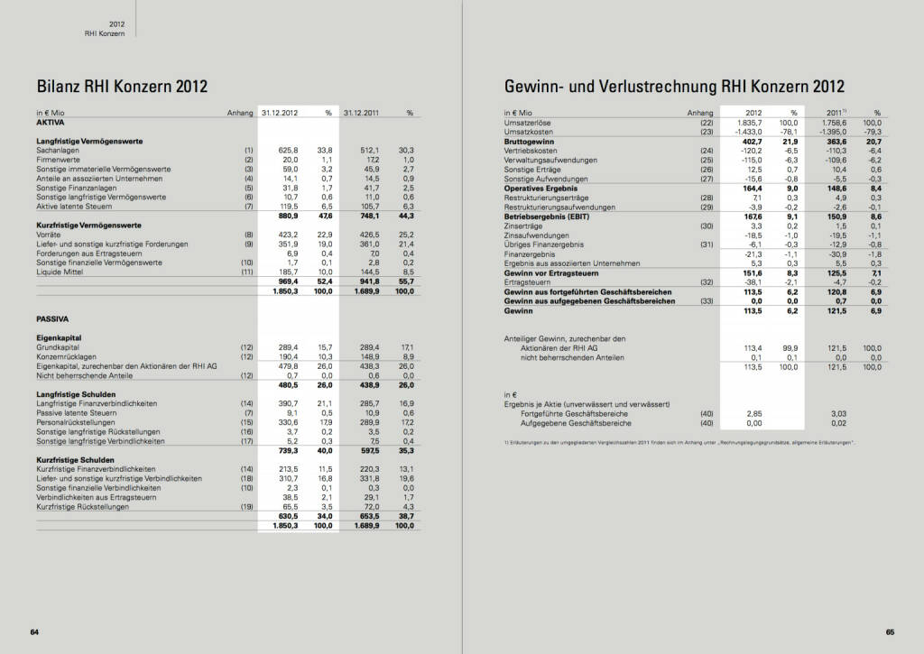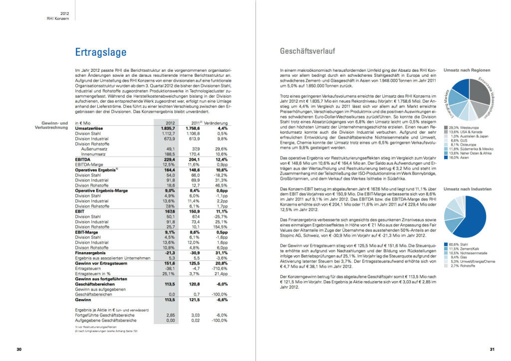 Sample page 8 for "Bilanz RHI Konzern 2012, Gewinn- und Verlustrechnung RHI Konzern 2012"