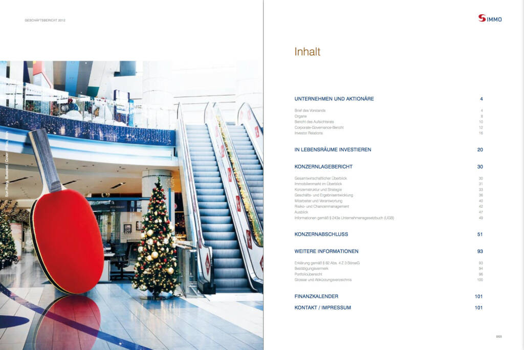 Vorne/Front of book 'Bericht Geschäfts - S Immo Geschäfts...