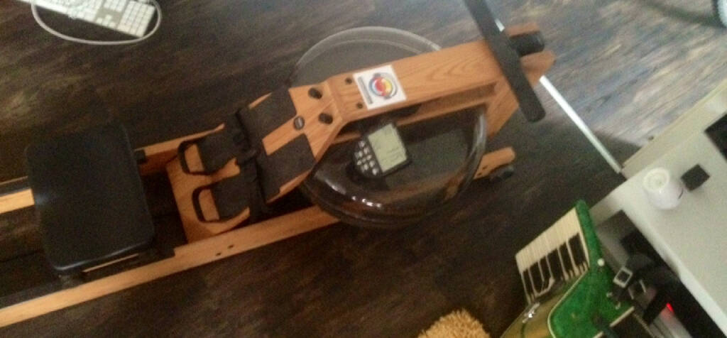 Nun, das musste ich natürlich als Herausforderung sehen und bin heute in meinem Büro auf meinem Waterrower (mit Runplugged-Pickerl) virtuell gegen Frank angetreten. Ich war schneller: 500m in ca. 1:36, dann sogar Handy zurechtgelegt und bei 1:38 ein Beweisfoto gemacht.