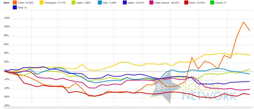 Weitere Highlights: Nike ist nun 3 Tage im Minus (12,57% Verlust von 122,53 auf 107,13), ebenso GoPro 3 Tage im Minus (23,61% Verlust von 2,88 auf 2,2).