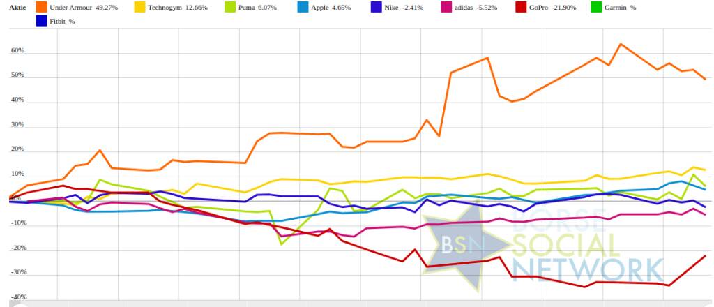 Under Armour 44,36% (Vorjahr: -39,98 Prozent) im Plus. Dahinter