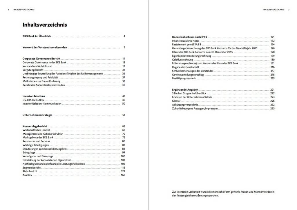 Sample page 1 for "BKS Bank - Inhaltsverzeichnis"