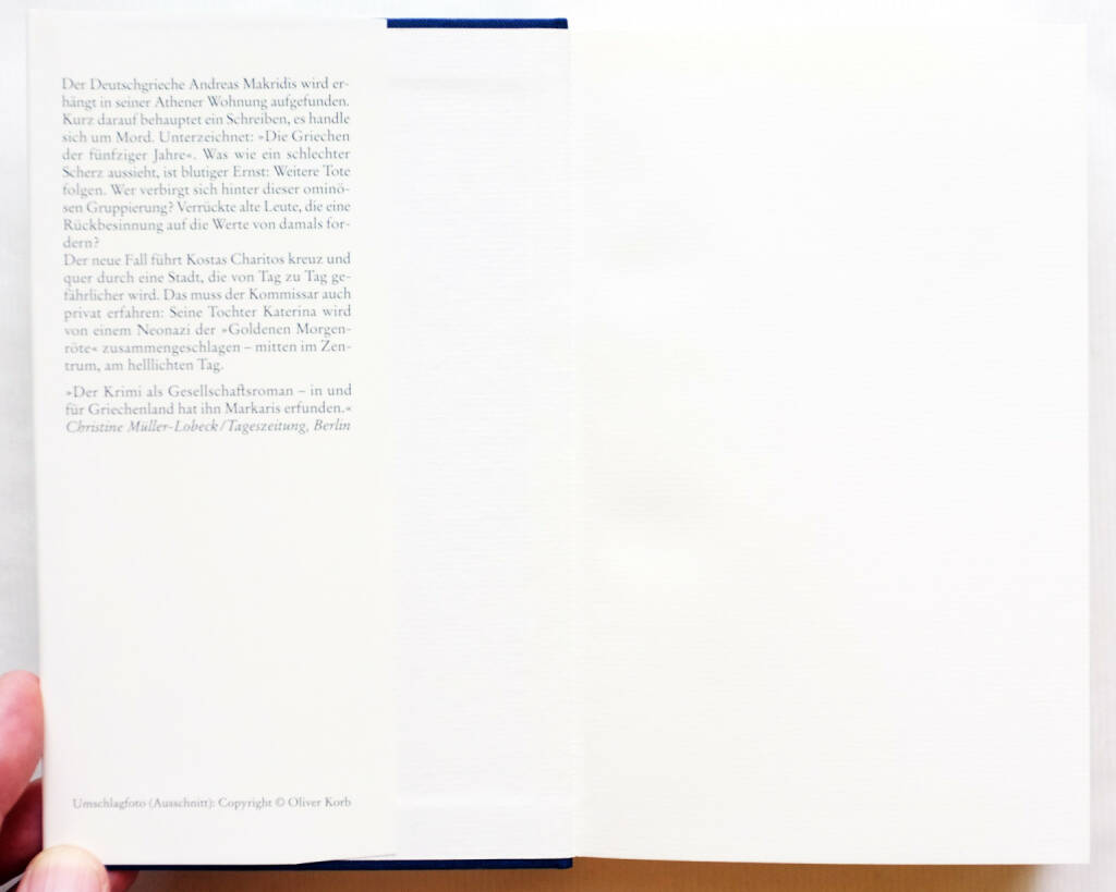 Warum geht es in Griechenland nicht endlich aufwärts? Die unbekannte Gruppierung »Griechen der fünfziger Jahre« glaubt die Schuldigen zu kennen. Aber geht die jüngste Mordserie wirklich auf ihr Konto? Kommissar Charitos ermittelt im Chaos der Stadt Athen, wo der labile soziale Frieden von radikalen Splittergruppen gefährdet wird, nicht zuletzt auch von der »Goldenen Morgenröte«.